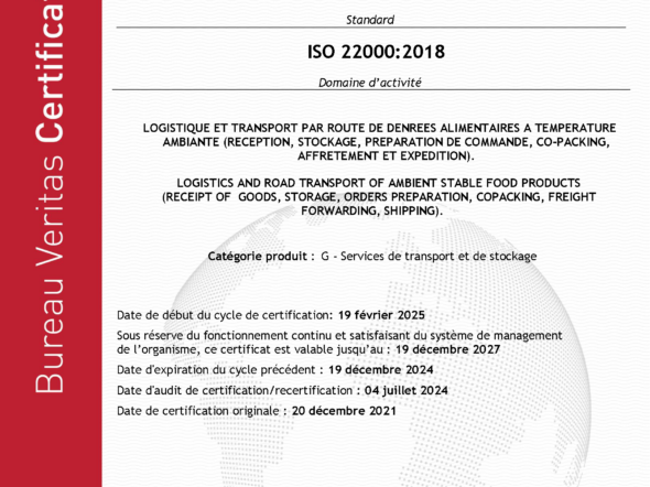 TEC Invest a reçu en février 2025, ses certificats pour l’ensemble de ses sites concernant les normes ISO 9001 (version 2015) & ISO 22000 (version 2018).