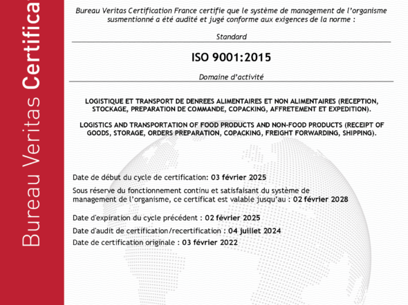 Domaine d’activité : logistique et transport de denrées alimentaires et non alimentaires (réception, stockage, préparation de commande, copacking, affrètement et expédition)